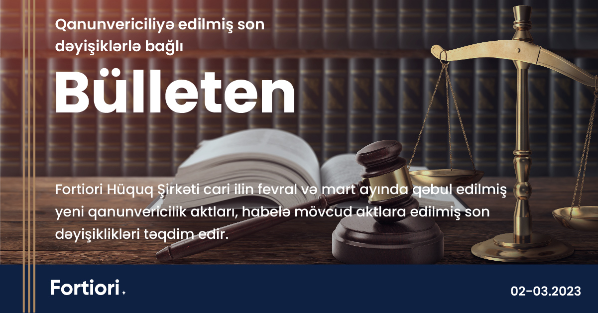 Qanunvericiliyə edilmiş son dəyişiklərlə bağlı BÜLLETEN April 4, 2023 Xəbərlər Fortiori Hüquq Şirkəti cari ilin fevral və mart ayında qəbul edilmiş yeni qanunvericilik aktları, habelə mövcud aktlara edilmiş son dəyişiklikləri təqdim edir. Qanunvericilik BülleteniDownload Share: Older Post “GOOGLE vs ORACLE” MƏHKƏMƏ İŞİ Newer Post Amerika Birləşmiş Ştatlarında kommersiya hüquqi şəxslər, onların növləri və təsis edilməsi (1-ci hissə)